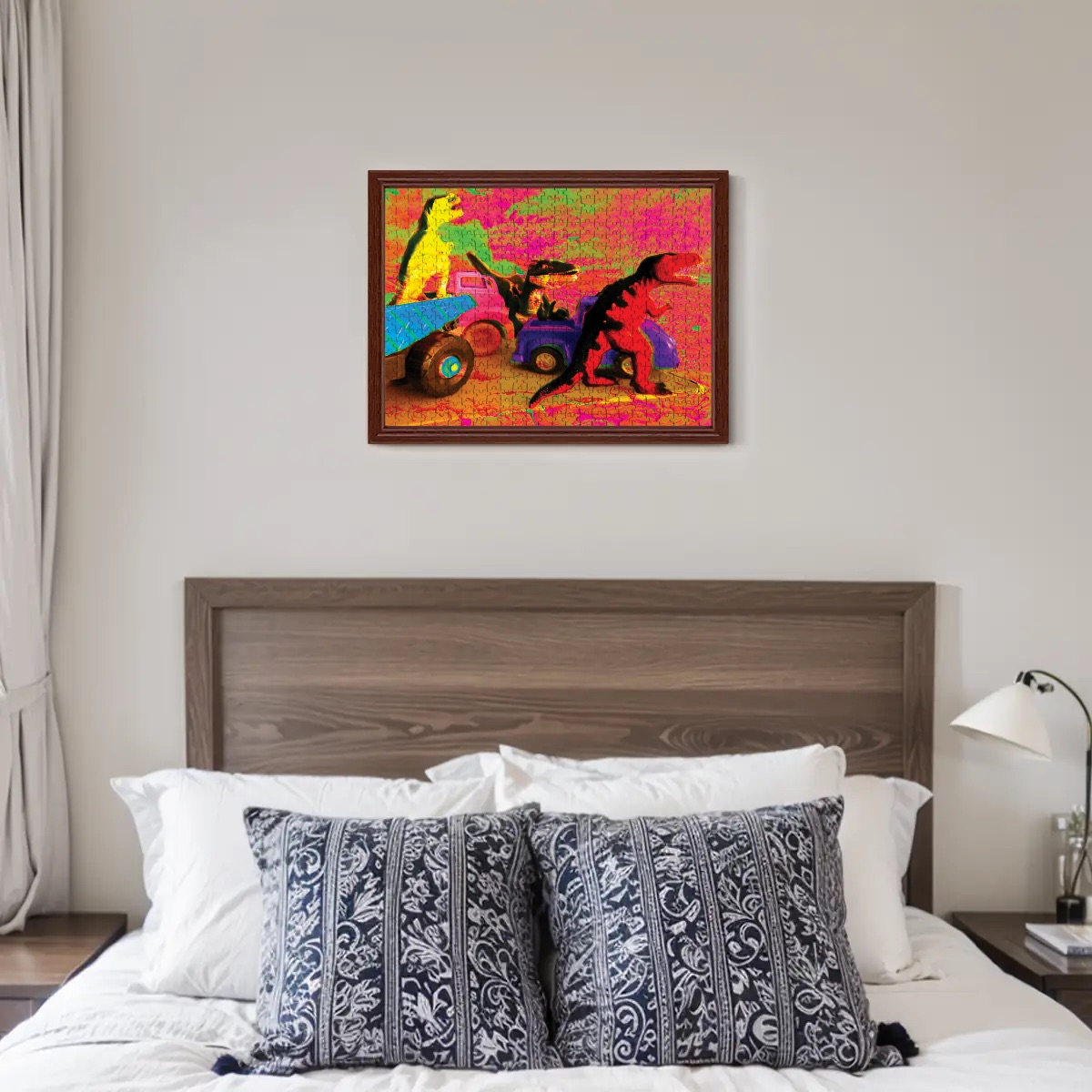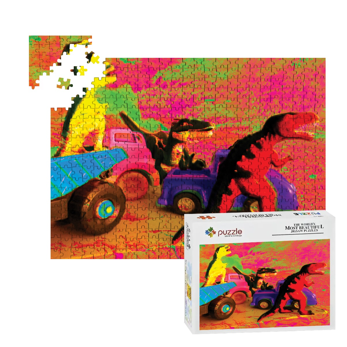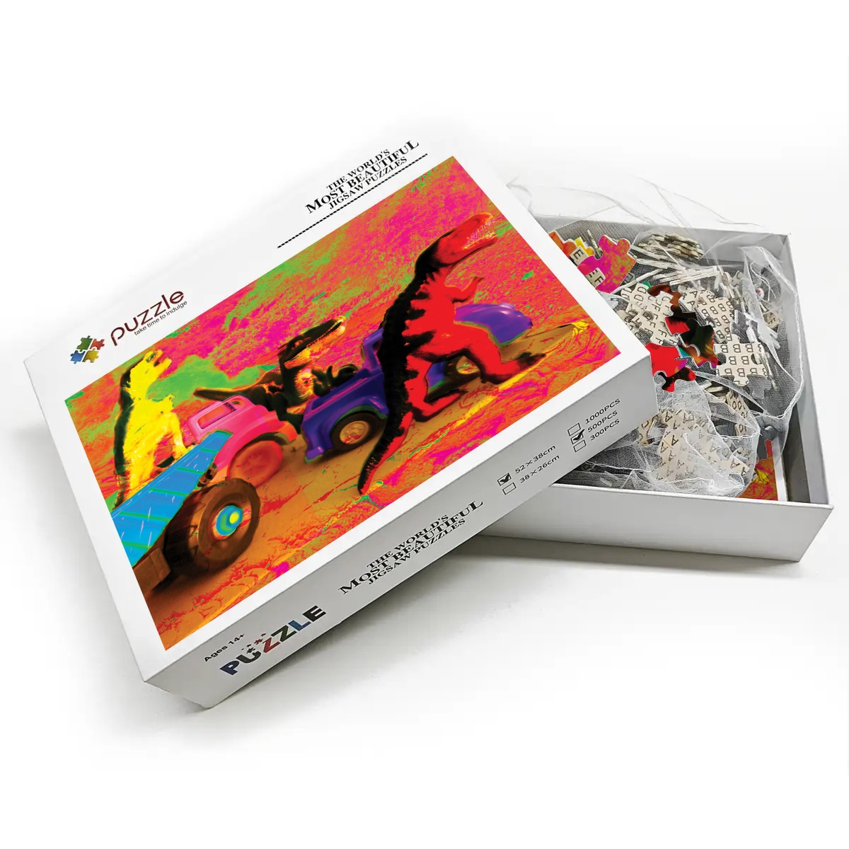 An adventure in the Dino toy world with vivid dinosaur toys, ideal for family fun, bonding, and boosting focus and cognitive skills. Great for relaxation and stress relief, finished puzzles can be framed as decor or gifted, adding a personal touch to home or office and creating lasting memories.